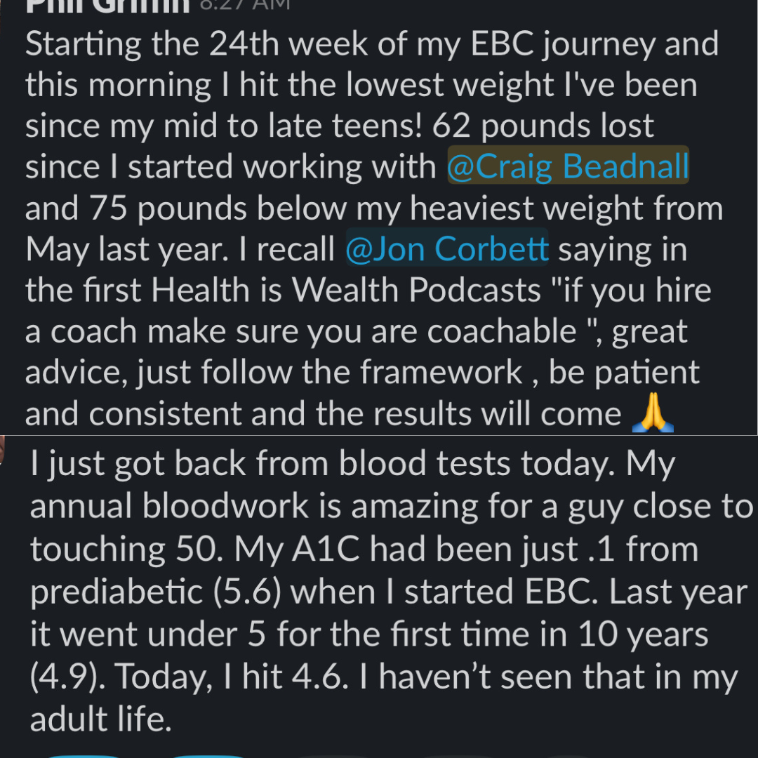 Fast forward to today. I’ve helped over 1,600 men worldwide lose fat, build strength, and upgrade their lifestyles with our Health Is Wealth method.